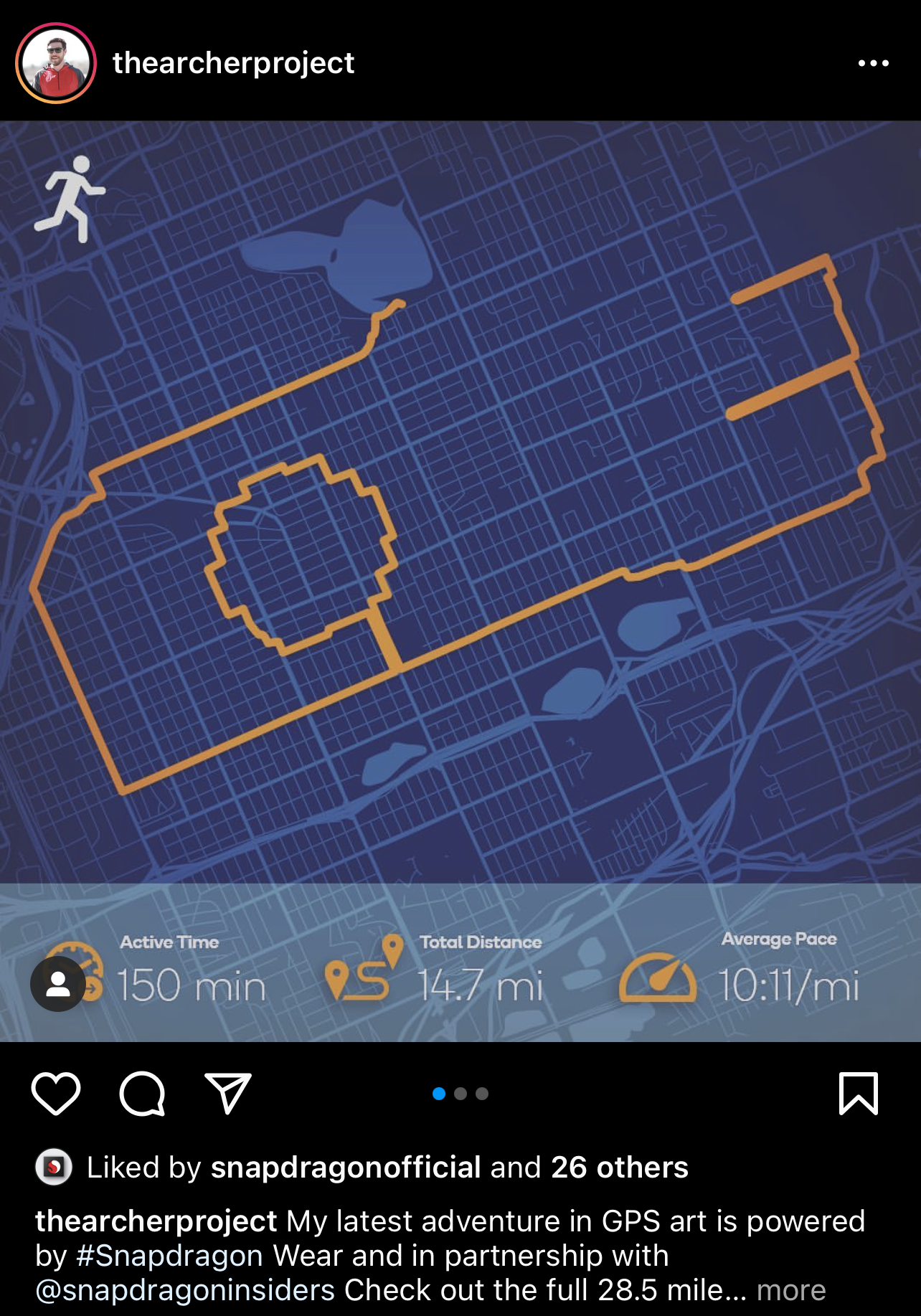 Collaborative run with tech/athlete influencers and their GPS-enabled smart watches.